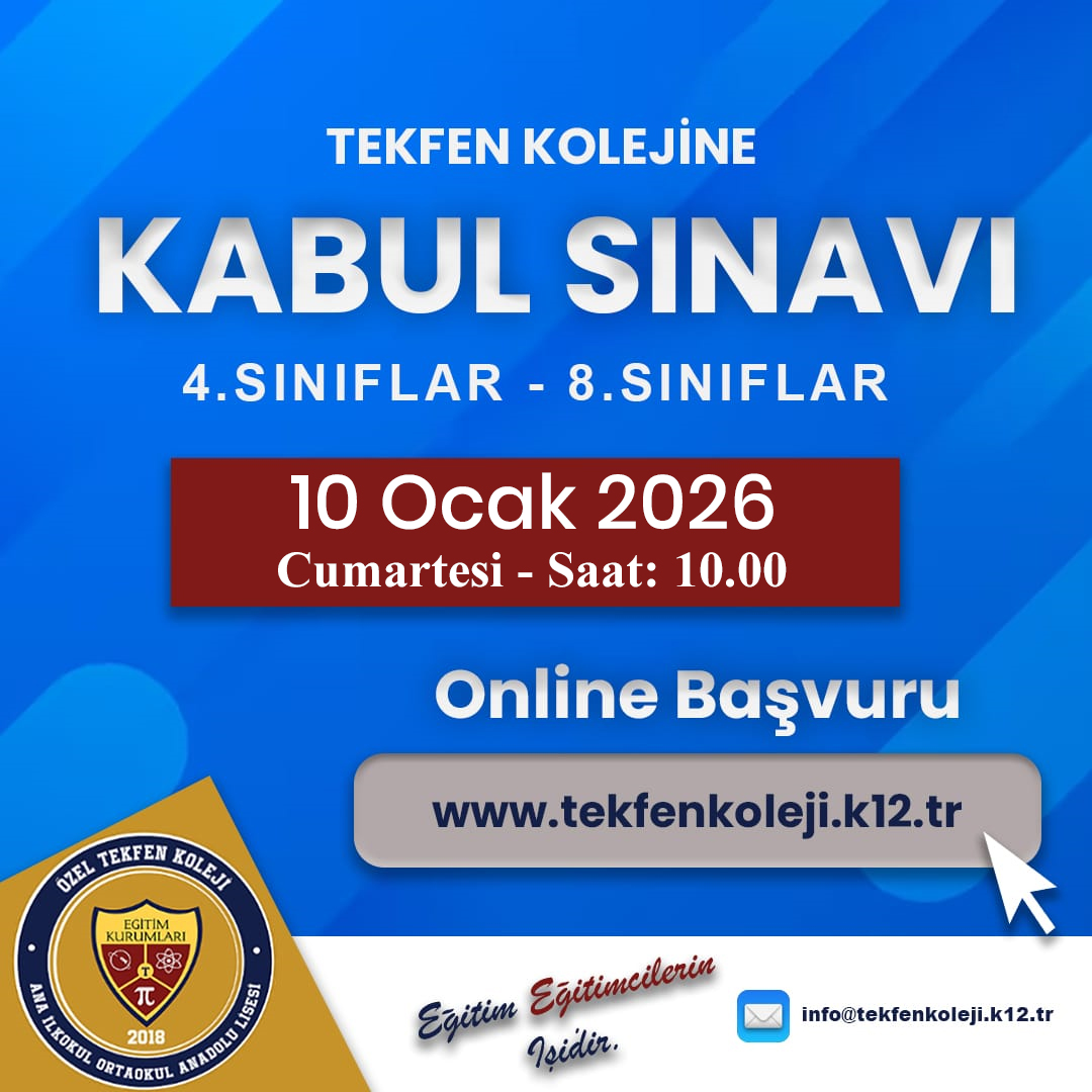 ÖZEL TEKFEN KOLEJİAnaokulu, İlkokul, Ortaokul ve Anadolu Lisesi, öğrencilerin ilgi, istek ve yetenekleri doğrultusunda hayata ve bir üst eğitim seviyesine hazırlamak amacıyla yola çıkmaktadır. TANITIM VİDEOSU Tekfen Kolejindeİntro Anaokul İlkokul Ortaokul Anadolu Lisesi Tekfen KolejindeDuyurularOkulumuzdan Haberler "YEŞİL GEZEGEN" Şubat ayı Dergisi Yayınlandı Tıklayınız Anaokulu - İlkokul - Ortaokul Kırtasiye İhtiyaç Listesi için Tıklayınız 29 EKİM CUMHURİYET BAYRAMINI COŞKUYLA KUTLADIK KOLEJİMİZDEUZAY ÇADIRI KURULDU Tekfen KolejindeHızlı ErişimArtık Sitemizde Anlık Erişim Sağlayabilirsiniz. Galeri Yemek Listesi Sportif Çalışmalar Robotik Çalışmalar Veli Bilgilendirme Sanatsal Çalışmalar İş Ortaklarımız